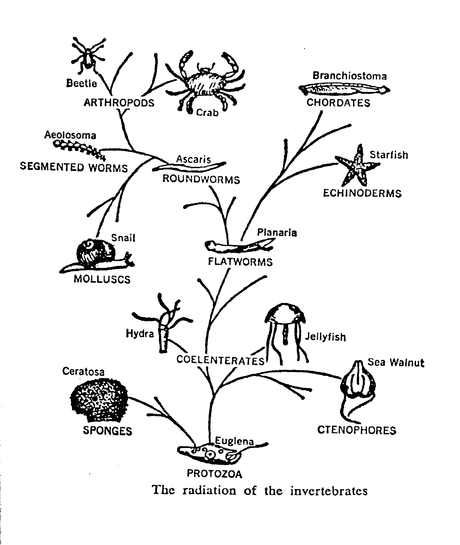 The Do-Cambrian Period (520 to 430 million Earth years ago): Both the invertebrate and the plant octaves were maturing fast in the liquid (ocean) portion of Earth. Being-prokaryotes (nucleiless cells), being-eukaryotes, being-algae had split the biocosmic octave yin-yangly into the plant octave. Protozoa and amoeba emerged during this period. The invertebrate were only beginning to acquire hard coating or cover as gradual external skeletonization and evolved almost totally independently (from sea to land and to the air much later) its own arthropod octave to 'head-thorax-abdomen' arthropod beings of all kinds, and finding their presence in the the subsequent periods as insect octave. These arthropods originated from the protozoan octave.